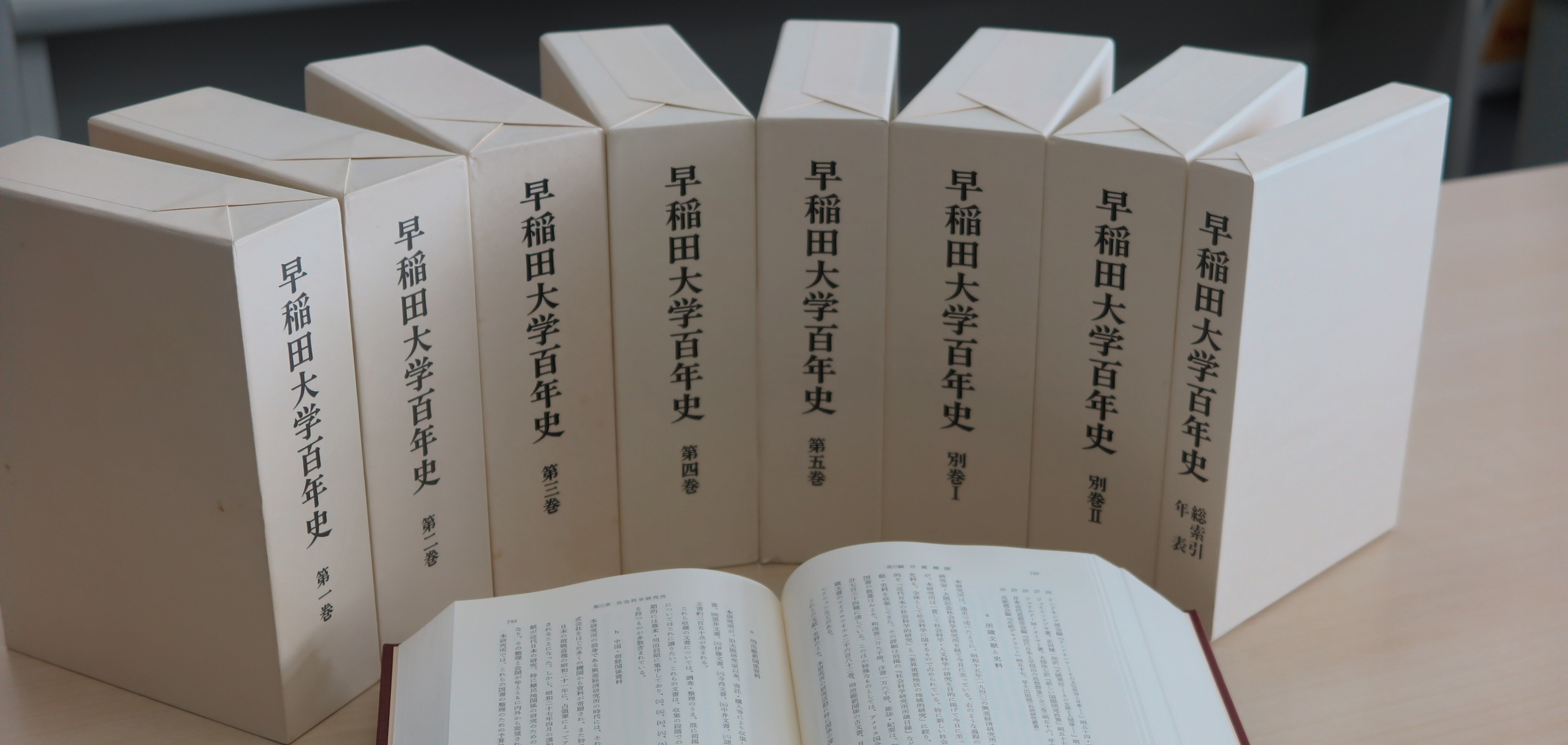 『早稲田大学百年史』は、早稲田大学創立百周年記念事業の一環として編纂された本学の沿革史である。 1978年から97年にかけて、本編(第一巻~第五巻)、別巻Ⅰ・Ⅱ、総索引・年表の計8冊を刊行している。